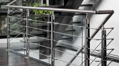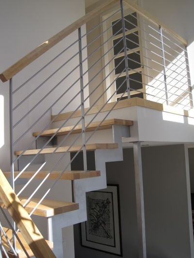Rampe d'escalier en aluminium ou en inox, bois, verre tromper